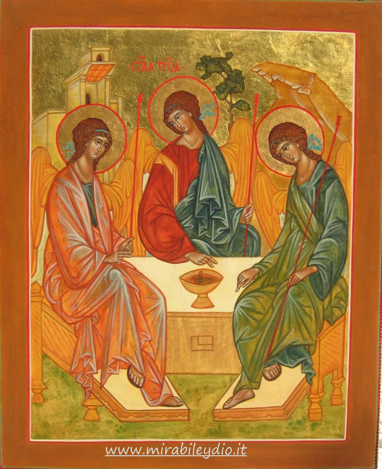 E' un capolavoro di rara profondità teologica, di bellezza. Trinità, beato nikon, nel 1411 circa. E' un capolavoro di rara profondità teologica, di bellezza. L'icona della ss.trinità è stata definita "l'icona delle icone" nel 1551 dal concilio dei cento capitoli.